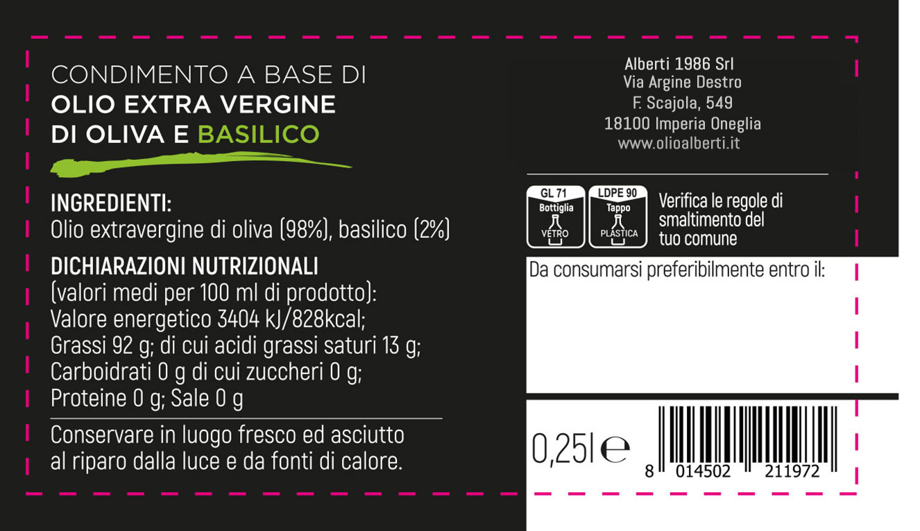 Condimento a Base di Olio Extravergine di Oliva & Basilico 0.25lt