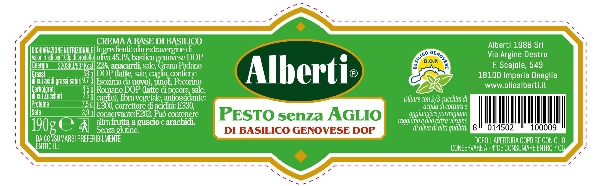 Si accompagna bene a tutti i tipi di pasta dura o fresca, ma in particolare si sposa perfettamente con le tipiche trofie o le trenette liguri. Lascia libera interpretazione ad una cucina creativa.