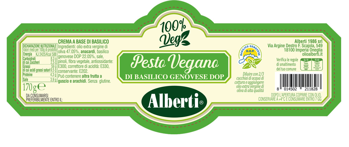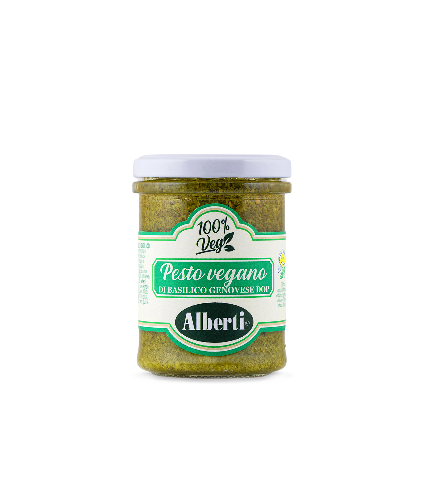 Il pesto vegano di Basilico Genovese Dop è un prodotto non pastorizzato, che mantiene integre tutte le caratteristiche organolettiche del tipico pesto fatto in casa.
